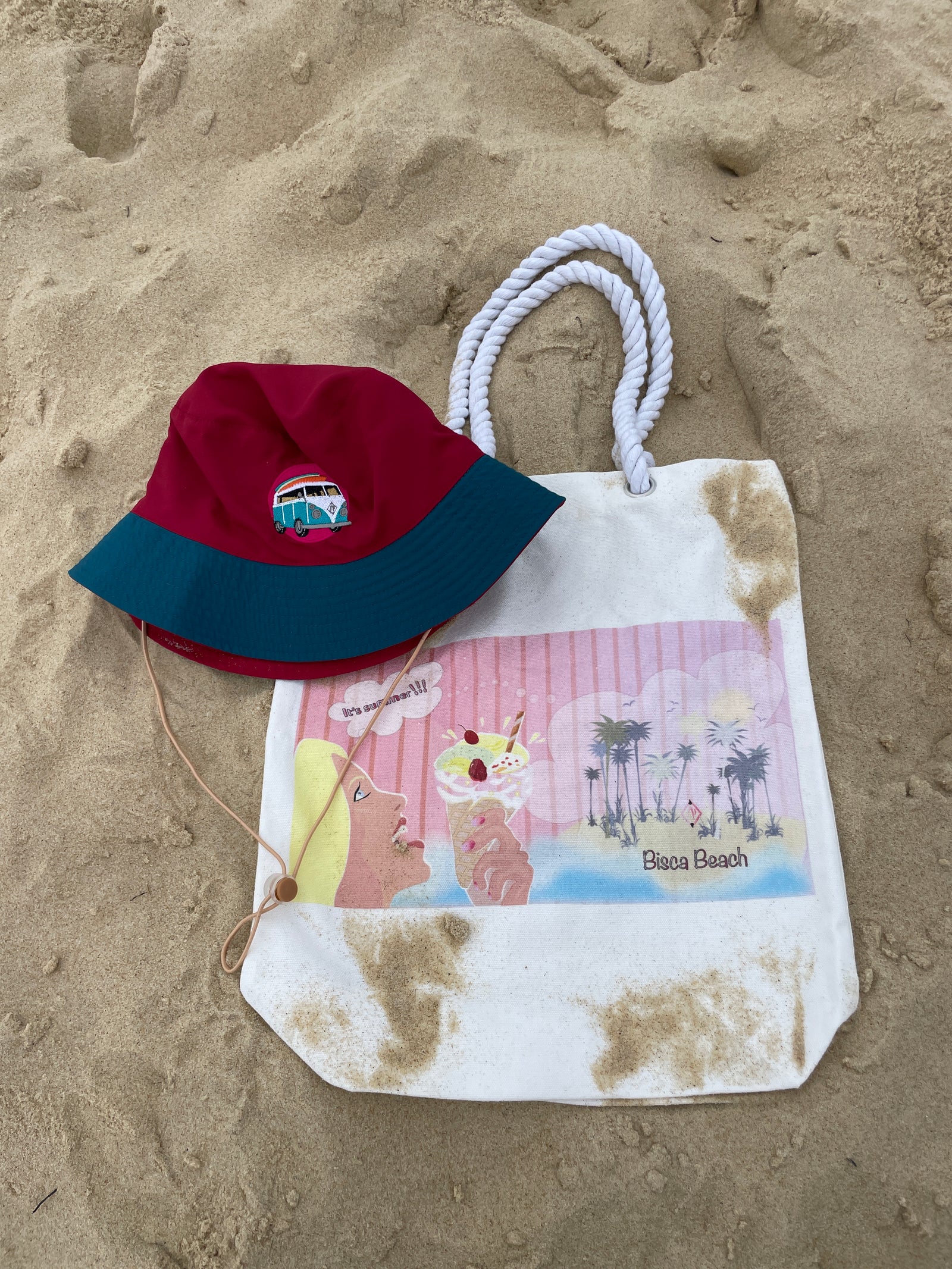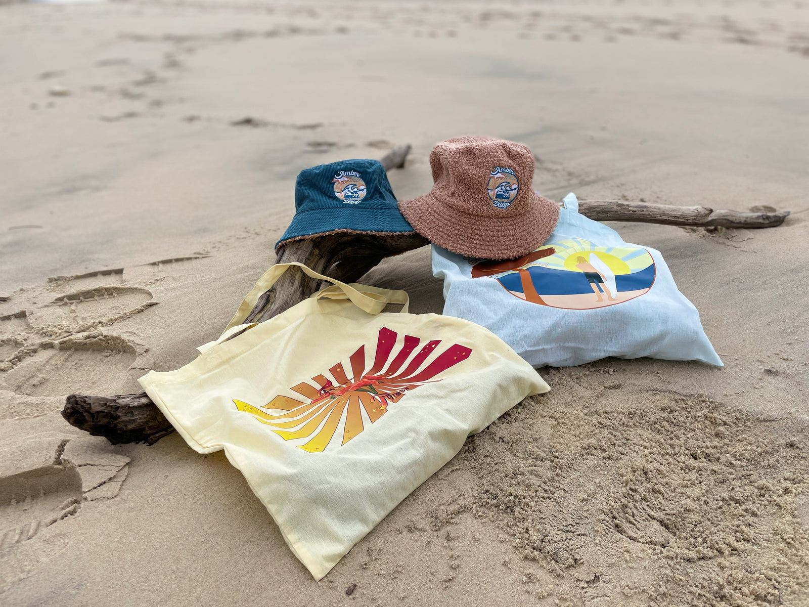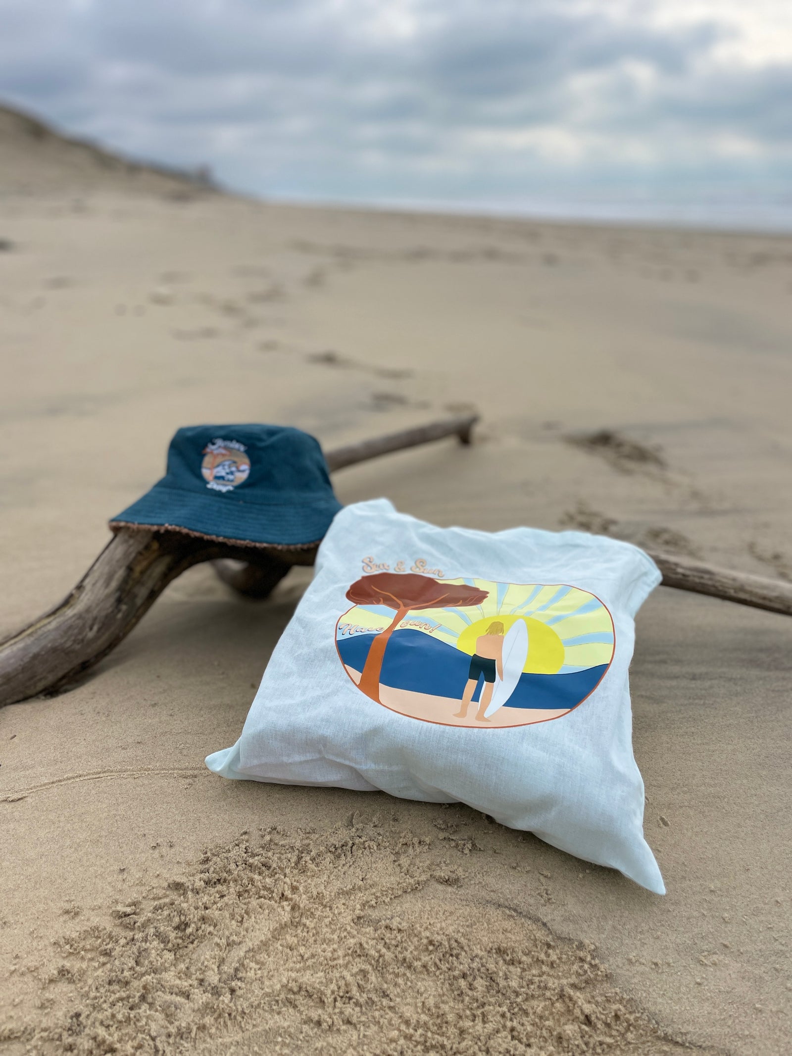 Des bonnets en laine, des casquettes, des tote-bags, des portes-clés, ainsi que des serviettes de plage.